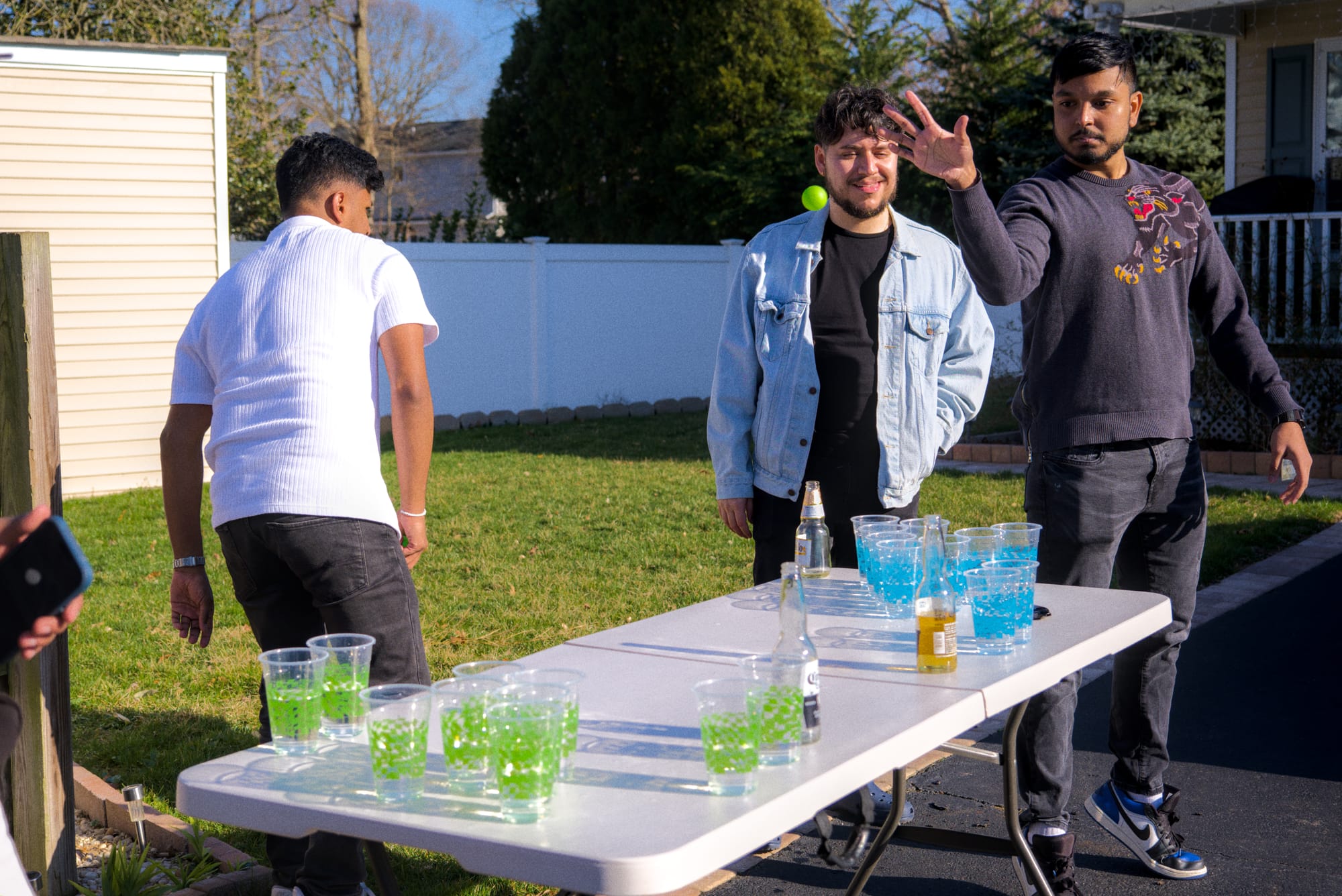 It was a nice day and our cousin's place was only 10-15 minutes away so we headed back to keep the good times going. With a bunch of beers, some cup pong setup, and the grill going, we played cup pong for a good long while while chilling in the yard.